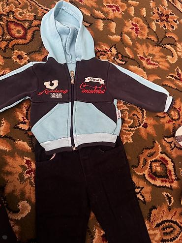 Набор детской одежды для мальчика, тёплый и повседневный размер 86 от Zara В комплект входят: - Стёганая куртка тёмно‑синего цвета со стойкой без капюшона, на кнопках спереди. Фигурная простёжка, ...