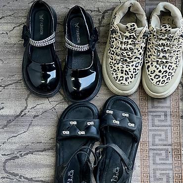 500 сом все вместе.Детская обувь набором: повседневные и сезонные пары для девочки. Состав подбора на фото: - Кеды/кроссовки серо‑розовые. - Лоферы лаковые черные с пряжками. - Мокасины джинсовые ...