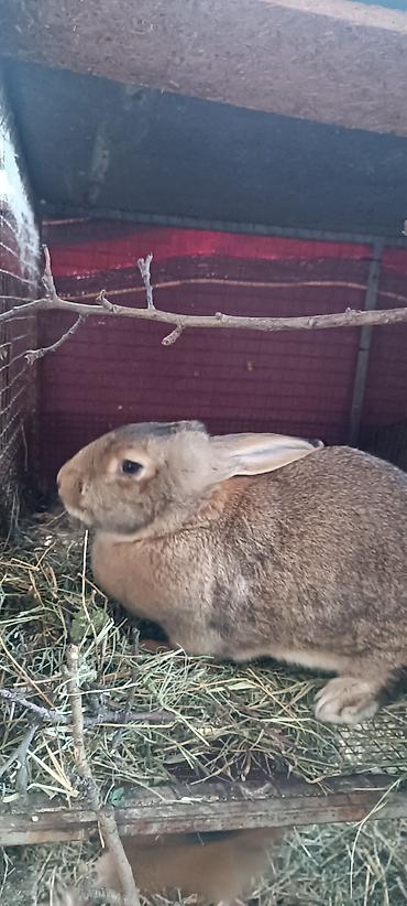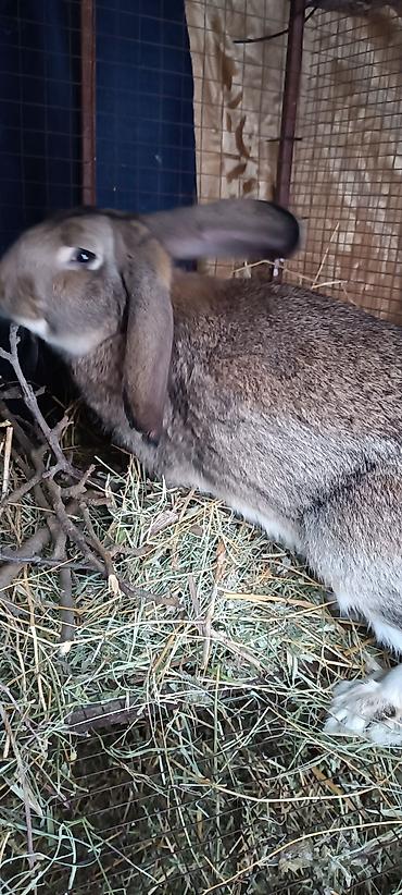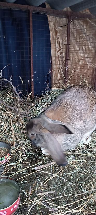 4самка 10 месяц Домашние кролики крупной породы (фландр/похожие гиганты) - Окрас: серо-агouti и белый. - Уши очень длинные, плотные — характерная черта крупных пород. - Корпус массивный, широка...
