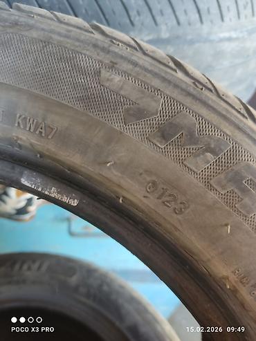- Протектор: асимметричный с тремя продольными дренажными канавками для эффективного отвода воды и устойчивости на скорости