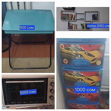 - Кухонный буфет/пенал: нижняя тумба с распашными дверцами и верхние полки для хранения, рабочая поверхность. Цена: 2 000 сом.