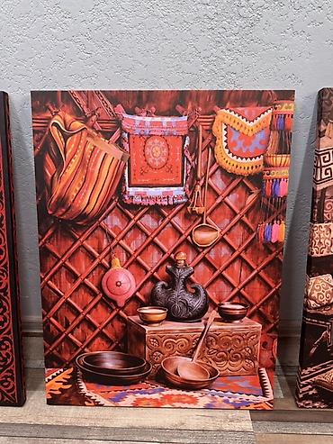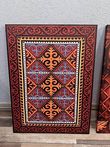 - Сюжеты: национальные орнаменты, интерьер юрты, утварь и декоративные элементы.