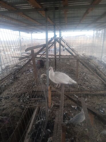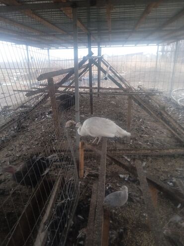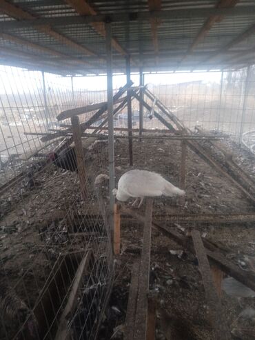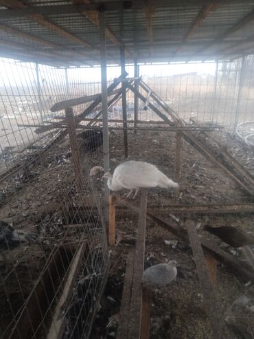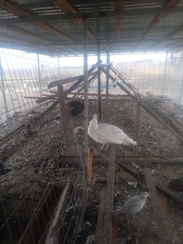 - На фото видно белого павлина; в вольере также присутствуют птицы других окрасов