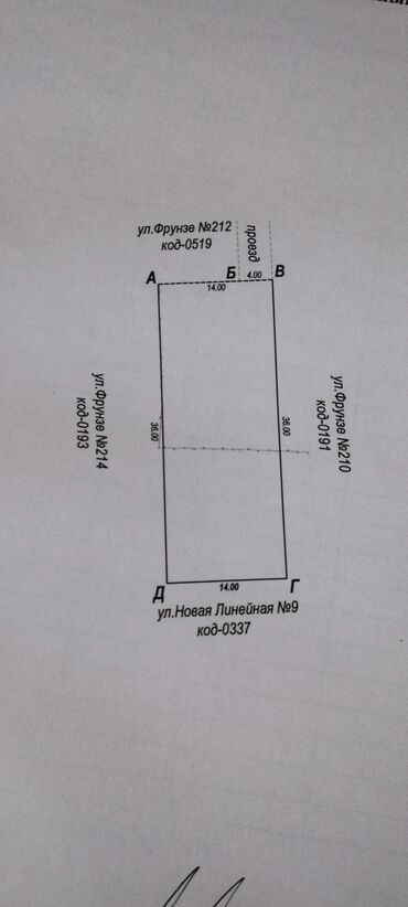 Представлен схематический план земельного участка, расположенного Новопокровка, улице Фрунзе 212, с указанием его размеров и конфигурации. На плане выделена площадь в 5 соток, что позволяет оценить потенциал участка для строительства или садоводства. Также указаны прилегающие улицы: Фрунзе и Новая Линейная, что помогает определить местоположение участка и удобство доступа. Размеры сторон 14.00 м и 36.00 м дают четкое представление о форме участка, а также указан проезд 4.00 м.