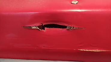 - Обивка основания комбинированная: гладкая красная экокожа и полосатый текстиль по периметру.