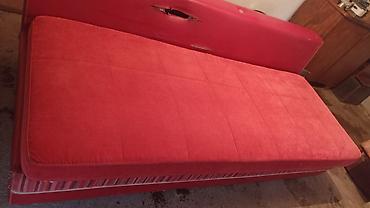 - Цвет: красный (корпус и борта), матрас/верхняя подушка — красный велюровый текстиль; внутренний чехол — светлый стёганый.
