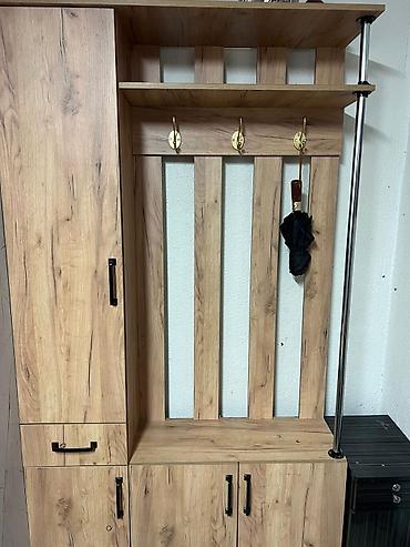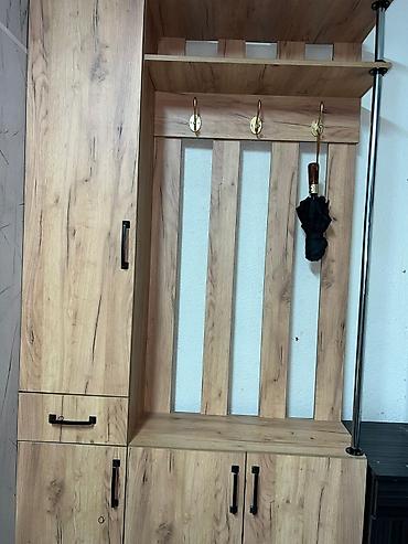 Практично для компактных прихожих: организует хранение верхней одежды, обуви и мелочей, есть место для сидения и полка под головные уборы. Цвет и фактура легко сочетаются с нейтральными стенами и темной или светлой напольной отделкой.