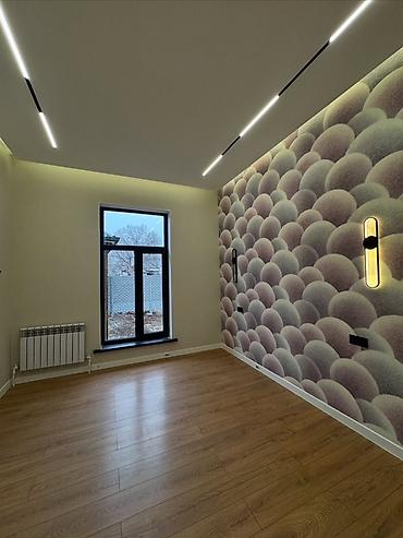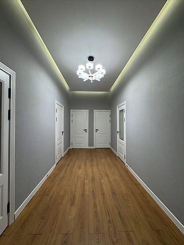 - ровные стены, современные настенные светильники и линейное LED‑освещение по потолку, скрытая подсветка периметра;