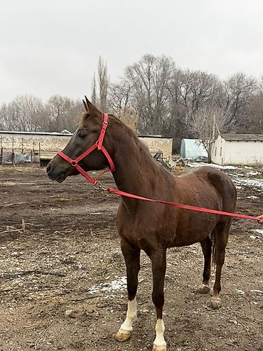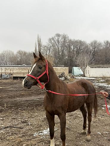 Жеребец 4 года , рост в холке 1,68. Полукровный - 80 % Английская с карачайцем. гнедая порода с черным хвостом и гривой. Стройный, высокий тип, выраженная шея и длинные ноги. Хорошо держит шаг и ...