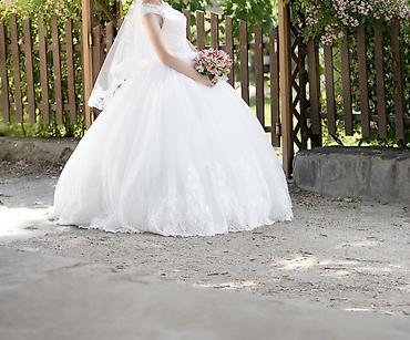 Свадебное платье, С фатой, Пышное, Кыргызстан, Стразы, Б/у