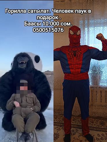 - Цена за костюм гориллы: 10 000 сом, костюм Человека-паука в подарок.