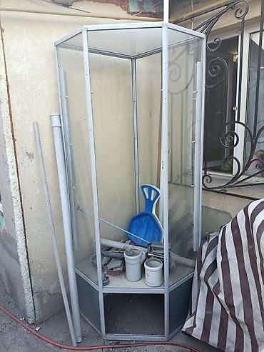 - Конструкция разборная: алюминиевые стойки, стеклянные секции, верхняя крышка.