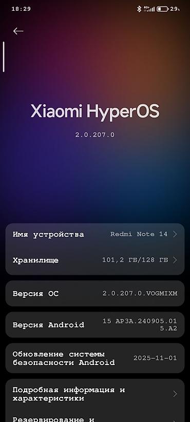 Смартфон Redmi Note 14 Ключевые характеристики: - Память: 256 ГБ встроенной, доступно около 28 ГБ из коробки занято системой и приложениями - Операционная система: Xiaomi HyperOS 2.0.207.0 (на баз...