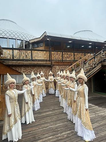 Постановочное выступление ансамбля народного танца. - Жанр: восточные/центрально-азиатские народные танцы с элементами классической хореографии. - Состав: женский квартет. - Костюмы: яркие сцениче...