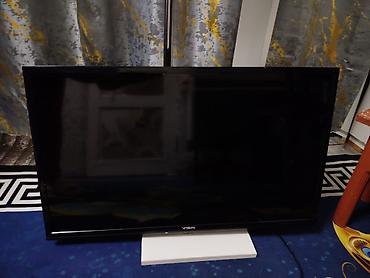 Телевизор VASIN, диагональ примерно 32–40". Классический черный корпус, узкие рамки. Плоская панель, настольная установка на центральной подставке.