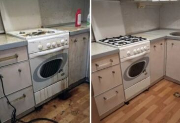 - Глубокая очистка кухни: удаление жира и нагара со сварочных решёток и конфорок, мытьё плиты, панели, фасадов и фартука.
