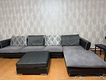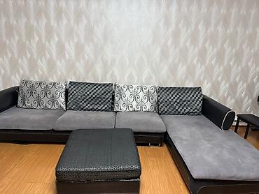 Угловой диван с оттоманкой Б/у - Конфигурация: угловая, правая оттоманка. - Посадочные места: 4–5 человек. - Комплектация: три большие спинки-подушки, широкое сиденье, оттоманка для отдыха ног. -...