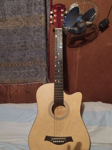 Акустическая гитара шестиструнная - Классический корпус типа фолк/оркестра (округлые плечи, глубокий резонатор). - Цвет: темно‑вишневый (сатиновый/полуглянцевый). - Накладка грифа темная, 18–20 ла...