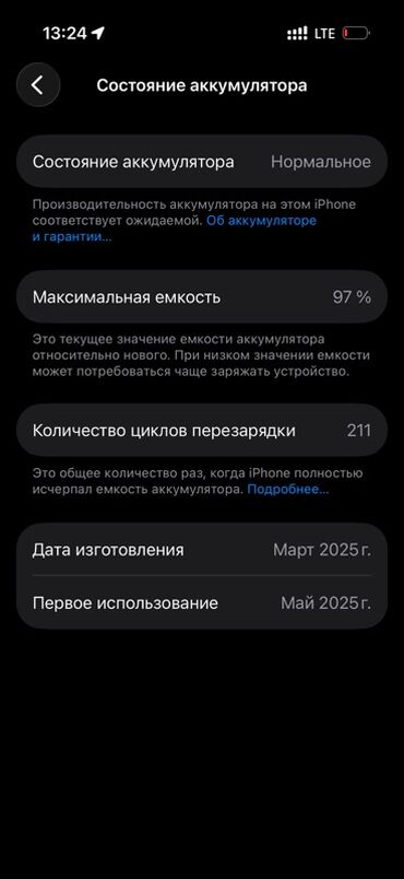 Продам IPhone 16 Pro Max, Black Titanium, 100 % АМЕРИКАНЕЦ в отличном состоянии Аккумулятор - Максимальная ёмкость: 100% - Количество циклов перезарядки: 132 - Дата изготовления аккумулятора: март ...