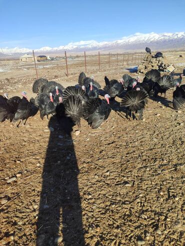 Индюки, выращенные на выгуле. - Поголовье: самцы и самки, разные окрасы (черные, пестрые). - Масса: на фото контрольное взвешивание — около 7-8 кг; в стаде имеются особи сопоставимого и крупнее ра...