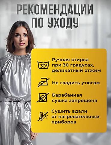 Под костюм-сауну необходимо надевать хлопчатобумажное бельё, впитывающее влагу, выделяемую кожей. Таким образом главной функцией костюма-сауны является блокировка тепла, выделяемого организмом и усиленное потоотделение, которое способствует снижению веса.