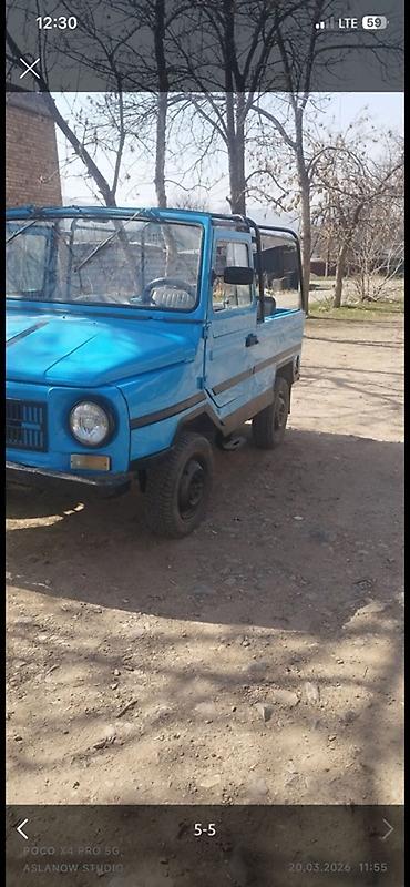 Синий лёгкий утилитарный пикап/кабриолет с открытым кузовом и каркасом под тент.