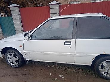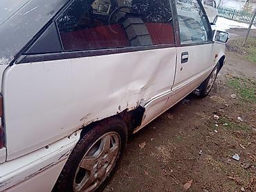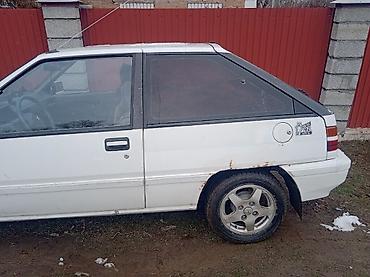 Легковой автомобиль хэтчбек/седан классического типа (примерно конца 80‑х – начала 90‑х годов), передний привод. Кузов светлый, бампера и окантовка решётки — тёмные. Фары прямоугольные, заниженная ...