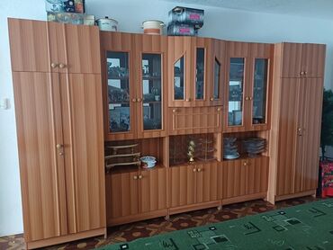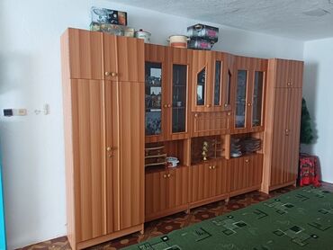 Идеально для хранения посуды, текстиля, документов и декора, оформит стену в зале или столовой. Размер по фото — во всю стену; модульная структура позволяет переставлять секции.
