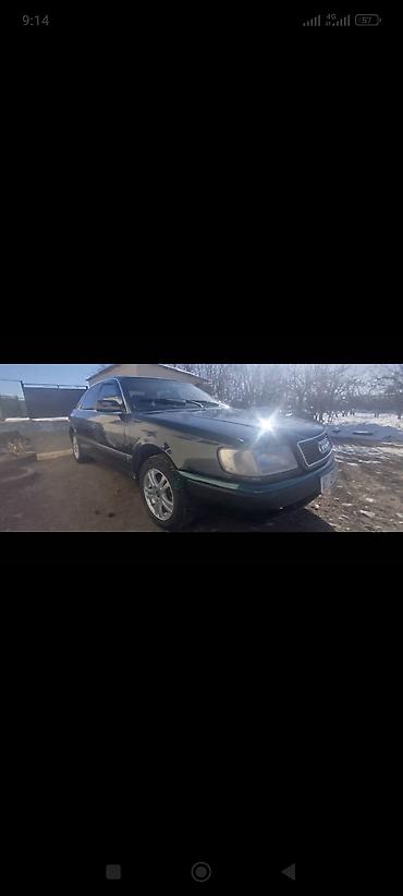 Audi 100 C4, седан, тёмно‑зелёный цвет (металлик). Номерные знаки KG на фото.