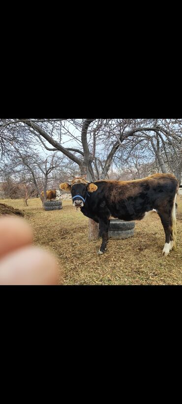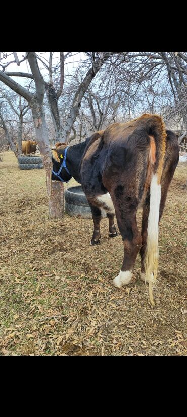 Телёнок мясо-молочного направления. Продаю телку Возраст 7-8 месяцев рост 100 см Стоит на привязи, справная, откорм Алатауской породы Аппетит хороший, все целой без повреждений Цена 60000 сом ...130 KGS