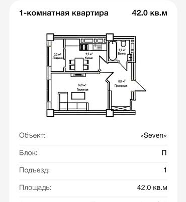 1 бөлмөлүү батир сатылат — ЖК “Seven”, «Технопарк» району
