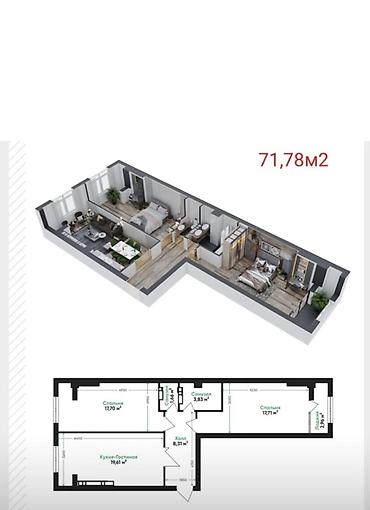 Просторная 3-комнатная квартира площадью 71,78 м² с продуманной планировкой.