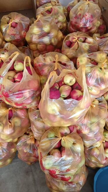 Свежие яблоки красных сортов в пакетах. - Насыщенный красный цвет, мелко- и среднеразмерные плоды. - Срывы с деревьев, с листьями на некоторых плодах. - Удобная фасовка в прочные жёлтые пакеты — у...