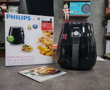 - Технология Rapid Air: приготовление с циркуляцией горячего воздуха, хрустящая корочка с использованием до 80% меньше масла (указано на коробке).
