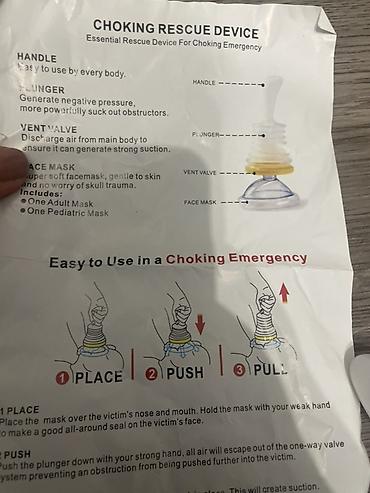- Средство первой помощи при удушье от инородного тела. Создает отрицательное давление и вытягивает обструкцию из дыхательных путей.