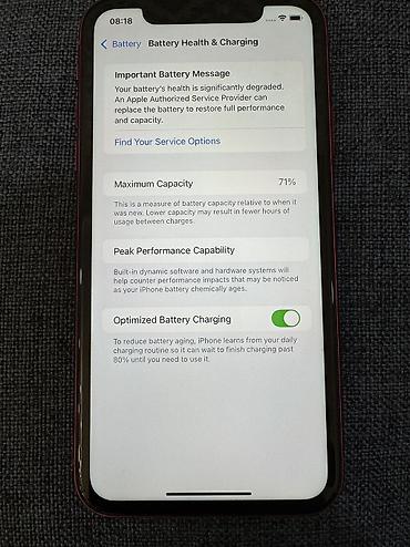 IPhone 11, Б/у, 128 ГБ, Красный, Коробка, 71 %