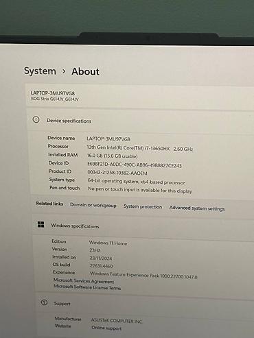 Asus ROG Strix G16 (G615J) — мощный игровой ноутбук, созданный для высоких игровых нагрузок и продуктивной работы. Этот ноутбук работает под управлением Windows 11 Home и оснащён топовым процессор...