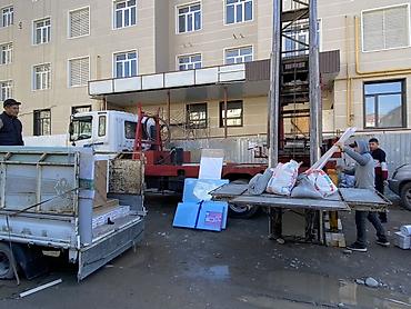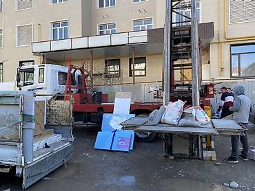 Грузовой подъёмник/лифтовая установка на базе грузовика для подъёма стройматериалов на этажи.