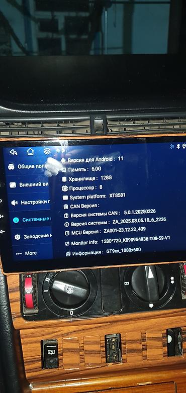 - В меню «О системе» отображаются: Android 11, RAM 6G, Storage 128G, Monitor info K0909S4936‑T08‑59‑V1.