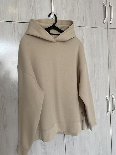 - Худи: объемный крой oversize, длинный рукав с широкими манжетами, мягкий капюшон без шнурков, заниженная линия плеча.