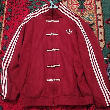 Бордовая куртка-олимпийка в спортивном стиле с азиатскими элементами дизайна.