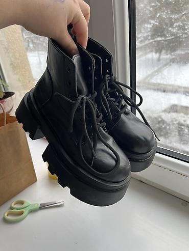 Черные кожаные ботинки на массивной платформе - Модель: высокие