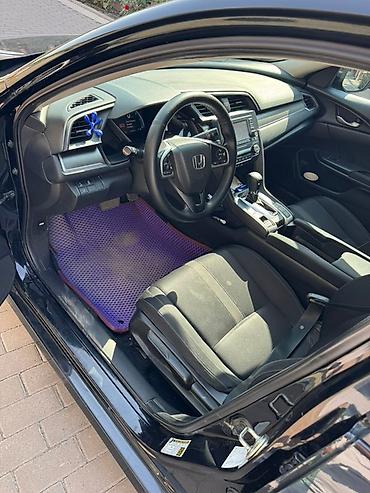 Черный седан Honda Civic с тонированными стеклами и легкосплавными дисками. Автомобиль оснащен спойлером на багажнике, двойной выхлопной системой и светодиодными задними фонарями. Салон автомобиля выполнен в темных тонах, с тканевыми сиденьями и мультимедийной системой. Автомобиль подходит для городской езды и дальних поездок, предлагая комфорт и современный дизайн. Идеальный выбор для тех, кто ищет надежный и стильный автомобиль.