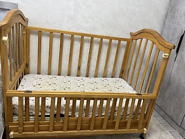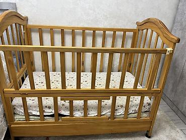 Детская деревянная кроватка классического дизайна.