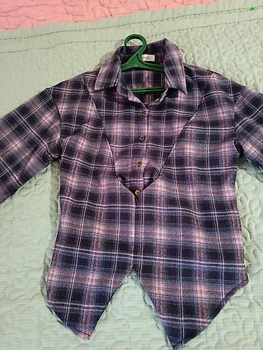1) Рубашка очень теплая , модная в клетку с поясом, размер стандарт 42-46 подойдёт..