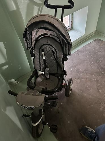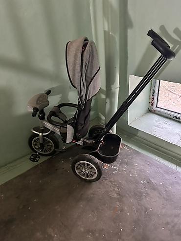 Детский трехколесный велосипед-коляска с родительской ручкой.