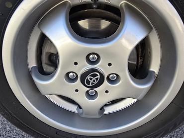 - Оригинальные легкосплавные диски Toyota, дизайн на 4 массивные спицы с фирменными колпачками по центру.