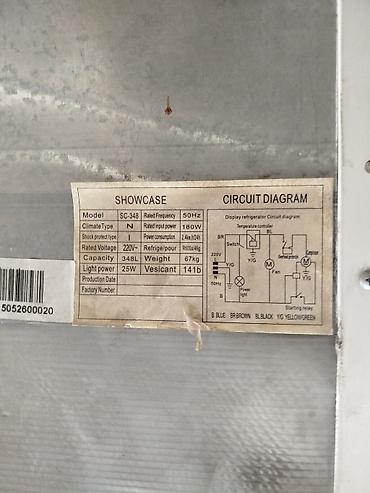 Габариты по типоразмеру 348 л: стандартный узкий форм‑фактор для размещения у стены и у кассовой зоны. Шильдик с электрической схемой в наличии.