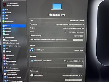 - Дисплей: встроенный Retina 15.4", разрешение 2880×1800