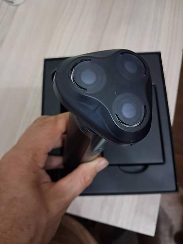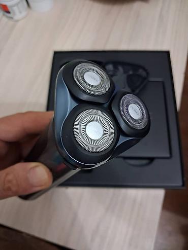 - Комплект в фирменной коробке: корпус бритвы, блок с роторными головками, защитный колпачок, кабель и документация (судя по отделениям в коробке).